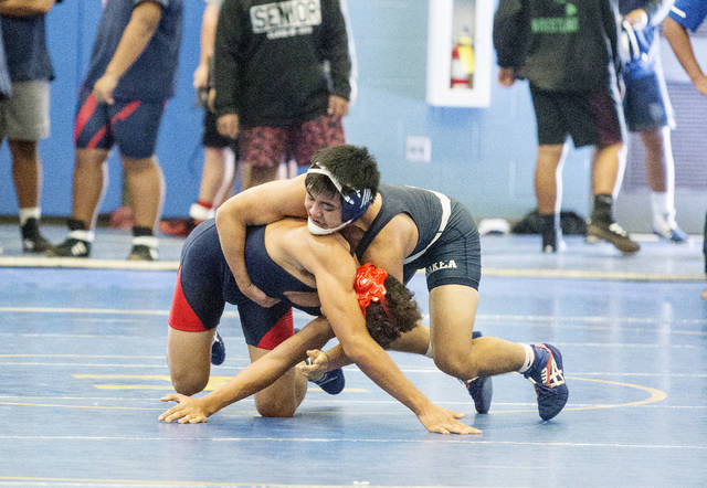 Also reaching semifinals were Waiakea’s Caleb Shimaoka, who wound up sixth at 126, as well at Hilo’s Lilly Campbell (fifth at 102) and Kitana Lowery, who was wrestling up two weight class but still finished fourth at 155.