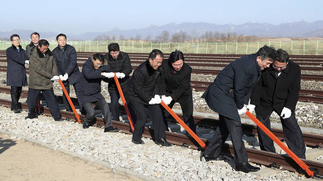 Seoul said it received an exemption to sanctions from the U.N. Security Council to proceed with Wednesday’s ceremony as it involved South Korean transport vehicles and goods. The Koreas’ joint survey of North Korean railways in November, which also required U.N. approval, marked the first time a South Korean train traveled on North Korean tracks.