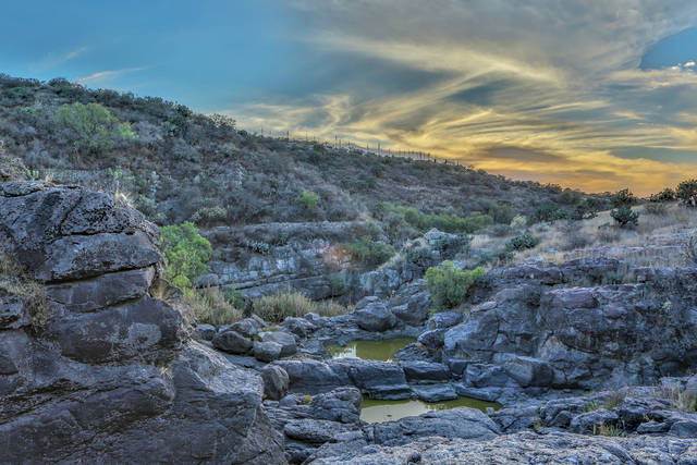 In addition to its biodiversity, El Charco is culturally and historically significant. Its name combines two Spanish words, “el charco” or “puddle,” and “ingenio” or “mill.” They refer to the ancient flow of water in the canyon, which originated in a natural spring, long since dried up, and the remains of an ancient mill or waterwheel, likely used to grind grain, which shows up on a map of San Miguel from 1580.