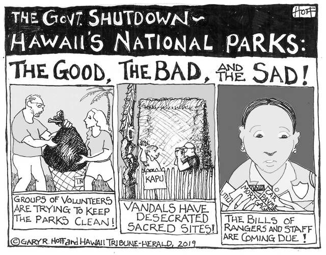 The Big Island as seen by Hawaii Tribune-Herald cartoonist Gary Hoff.