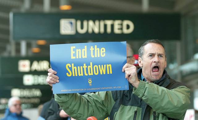 Several dozen federal employees and supporters demonstrated at the Sacramento International Airport calling for President Donald Trump and Washington lawmakers to end then partial government shutdown, Wednesday, Jan. 16, 2019, in Sacramento, Calif. (AP Photo/Rich Pedroncelli)
