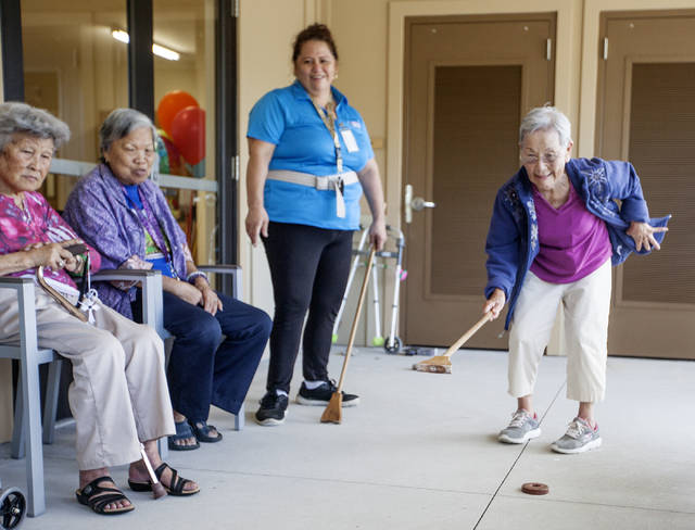 More than a dozen kupuna sat outside near the verdant gardens of the Harry and Jeanette Weinberg Adult Day Center in Hilo on Monday morning, ready for some shuffleboard.