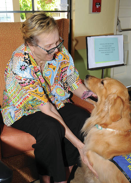 Jo Morrison also has seen Riley’s positive effect on the patients’ behavior. For example, she said, some people at the facility going through stroke rehabilitation and who might be partially limited on one side of their arm will reach out and pet Riley.