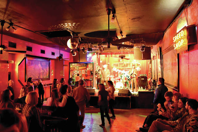These days the club’s walls between the murals are red, as is the felt on the pool table. A motorcycle dangles from the ceiling in back. (Ask a bartender to explain that.) A neon sign along the north wall says “Speed Shop,” and a metal washboard hangs behind the stage, easily accessible in case of an emergency requiring zydeco rhythm.