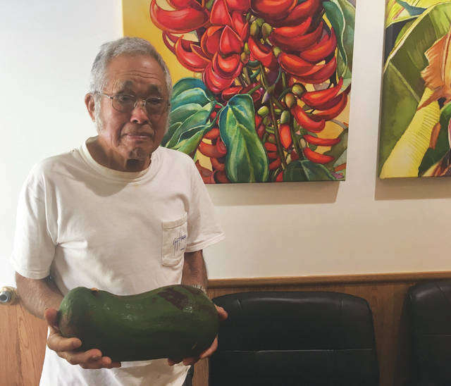 “This is not even the biggest,” McElroy said of Fukumitsu’s avocados. “He would never brag, but we had one that was 7 or 8 pounds. He just brings them in a big bag for us.”