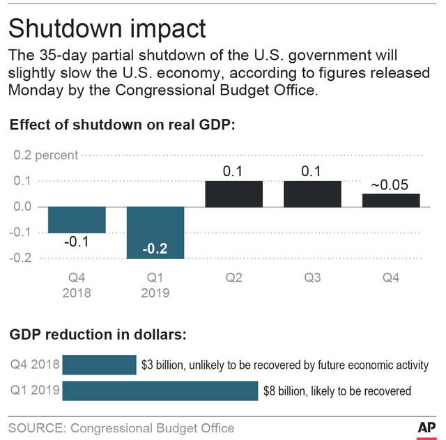 “The shutdown dampened economic activity mainly because of the loss of furloughed federal workers’ contribution to (gross domestic product), the delay in federal spending on goods and services, and the reduction in aggregate demand,” the report said.