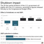 Overall, CBO predicts that just $3 billion in lost gross domestic product will be permanently lost, a modest figure in a $20 trillion-plus economy. By year’s end, CBO says, GDP would be just 0.02 smaller because of the shutdown, which shuttered many domestic agencies. Most of the 800,000 furloughed federal workers are returning to their jobs Monday.