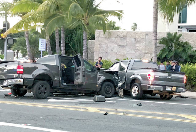 HONOLULU — Police say a pickup truck veered into a crowded Honolulu intersection, killing two pedestrians and a bicyclist and injuring four others.