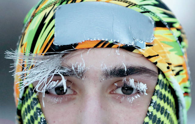 Frost covers part of the face of University of Minnesota student Daniel Dylla during a morning jog along Mississippi River Parkway Tuesday, Jan. 29, 2019, in Minneapolis. Extreme cold and record-breaking temperatures are crawling into parts of the Midwest after a powerful snowstorm pounded the region, and forecasters warn that the frigid weather could be life-threatening. (David Joles/Star Tribune via AP)