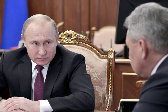 MOSCOW — Following in the footsteps of the U.S., Russia will abandon a centerpiece nuclear arms treaty but will only deploy intermediate-range nuclear missiles if Washington does so, President Vladimir Putin said Saturday.