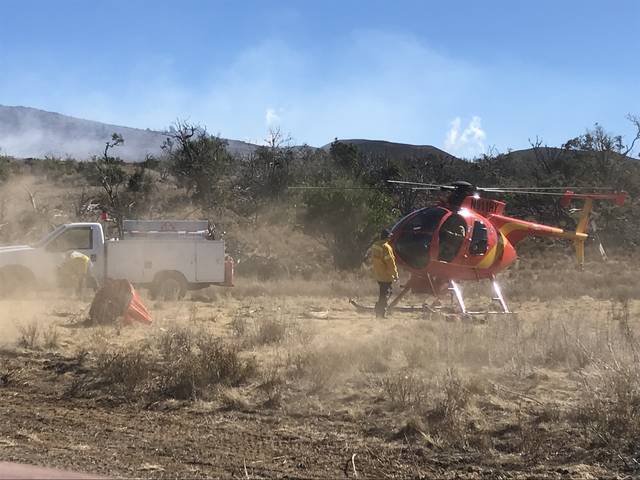 Because of the blaze’s location, aerial assets are playing the main role in dousing the flames, with two Hawaii County helicopters and one U.S. Army UH-60 Black Hawk performing water drops, he said. The Black Hawk has a 300-gallon capacity while the county helicopters can lift 90 gallons.