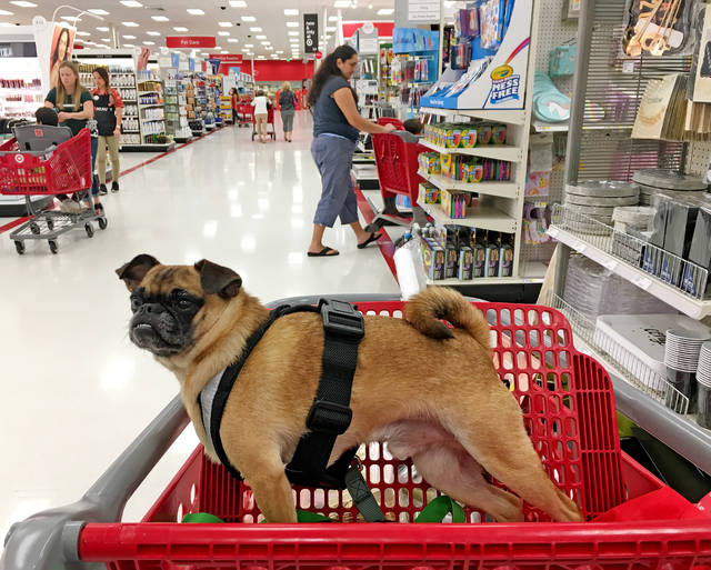 HOLLYN JOHNSON/Tribune-Herald file photo A dog stands in a shopping cart in 2018 at Target in Hilo.