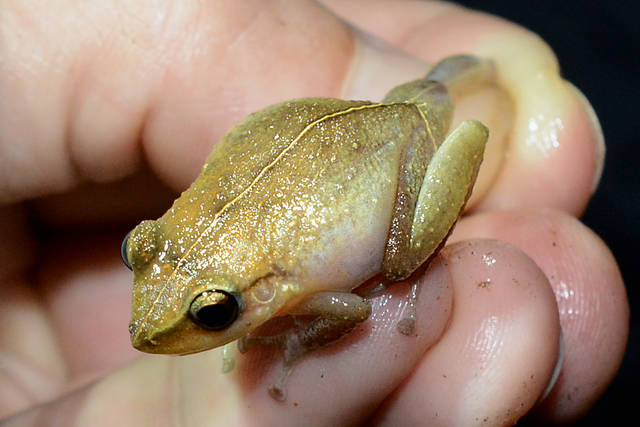 BIISC does flyovers in helicopters to spot rapid ohia death. Problems such as albizia trees can be seen at distance. Coqui frogs can be heard from perhaps even farther away. But less conspicuous species require confirmation up close.