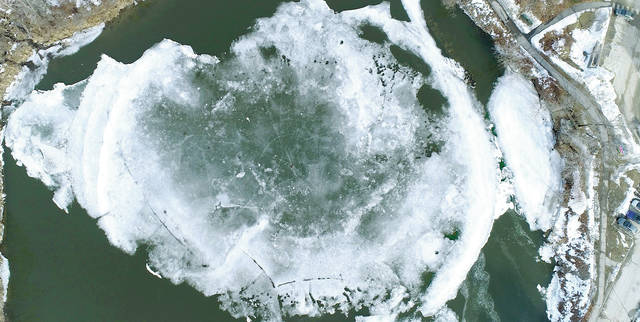 The ice disk formed in early January, drawing crowds to the river’s edge and attracting attention online.