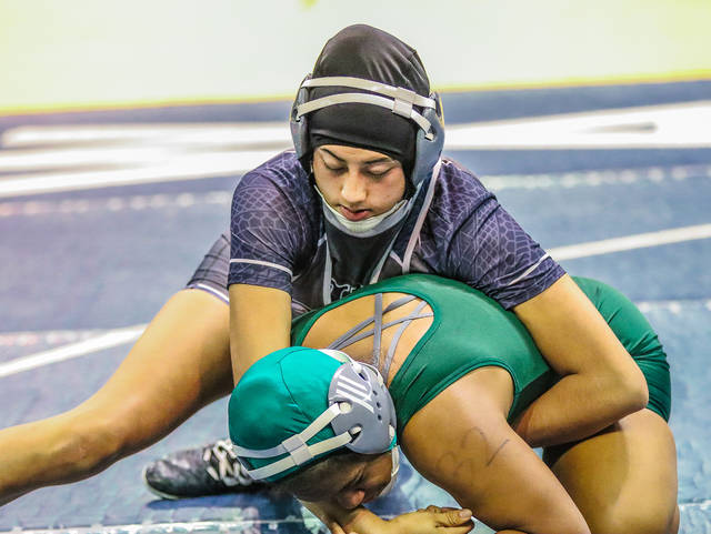 At 225, Kealakehe’s Myra Liufau was the only non-BIIF champion to reach the semifinals. Hilo’s Leona Toledo, the second seed, lost her first match Wednesday before pinning Keaau’s Zyann Pavao in a consolation match to remain in medal contention.