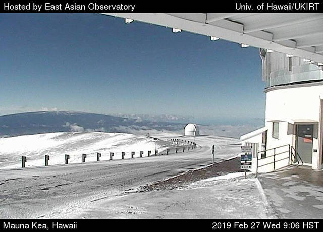 The Maunakea Access Road is currently closed at the 9200 ft. elevation due to the high winds, snow, ice and fog.