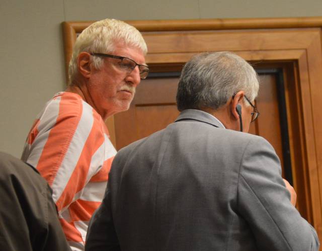 JOHN BURNETT/Tribune-Herald file photo John William “Bill” Hubbard, left, appears June 4 in Hilo District Court with Deputy Public Defender Michael Ebesugawa.