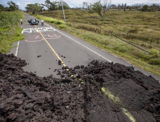 About 3 miles of the road is covered by lava, including about 1.7 miles to a kipuka, where homes and farms still remain, from last year’s Kilauea eruption.