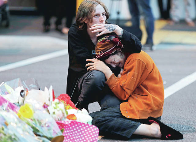 Mourners pay their respects at a makeshift memorial on Saturday near the Masjid Al Noor mosque in Christchurch, New Zealand. (AP Photo/Vincent Yu)