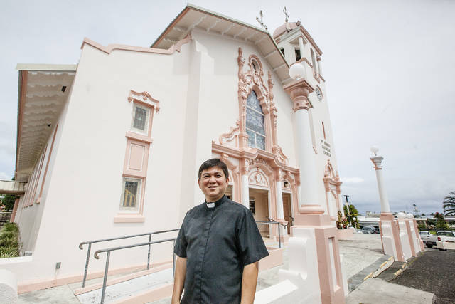 HOLLYN JOHNSON/Tribune-Herald Father Wilbert Laroga stands in front of St. Joseph Catholic Church Wednesday in Hilo.
