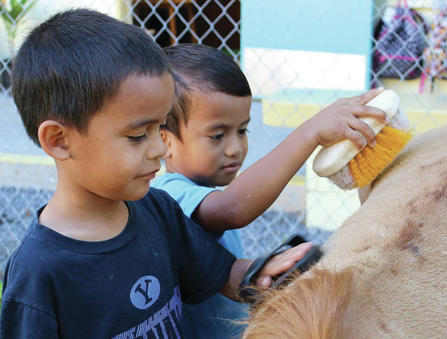 “I liked brushing them,” said kindergartner Nicholas Cranwell after interacting with Calypso and Peaches. “They’re fun to ride, too, but I can’t. I’m too big.”