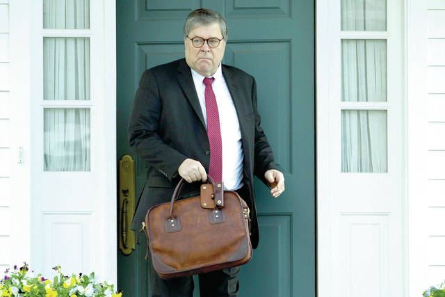 FILE - In this March 22, 2019, file photo, Attorney General William Barr leaves his home in McLean, Va. Barr told Congress on March 29, to expect version of special counsel's Russia report by mid-April. (AP Photo/Jose Luis Magana)