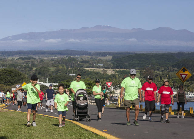 Walkers enjoy a sunny morning and a clear view of Maunakea during the 2019 Hilo Heart Walk on Saturday morning at Hilo Bayfront Park. The event not only raised funds for the American Heart Association, but also encouraged participants to give healthy food donations to the Hawaii Food Basket. Along with the walk, events at the park included a health fair, entertainment, free CPR lessons and a keiki fun fair. Find additional photos from the 2019 Heart Walk in the Monday, April 1, edition of the Tribune-Herald in Being There.