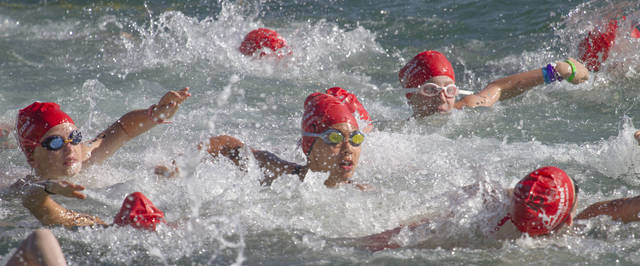 The athletes — many who have parents in today’s Olympic distance Lavaman race — came from as far as Alaska and Canada for the run-swim event. But there was plenty of local talent on display as well, including a large contingent from Academy Swim Club in Waimea.