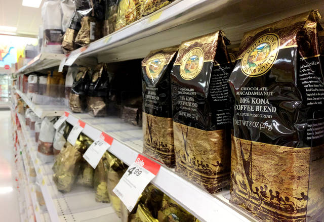 HOLLYN JOHNSON/Tribune-Herald file photo Bags of Royal Kona Coffee at Target in Hilo are labeled with “10% Kona coffee blend.”