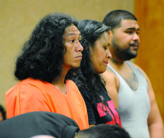 LAURA RUMINSKI/West Hawaii Today file photo Lama Lauvao, Natisha Tautalatasi and Wesley Samoa appear in Kona District Court in September.