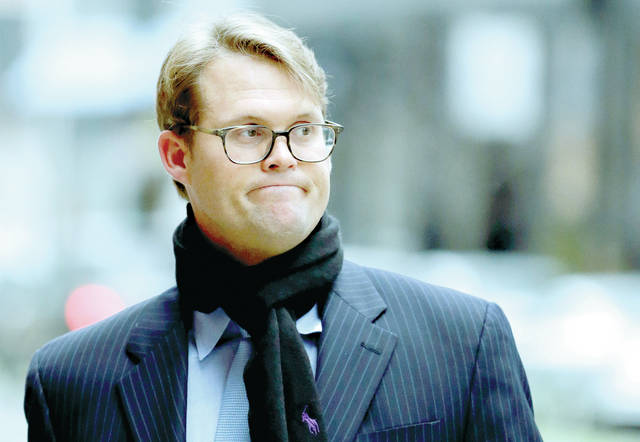 Mark Riddell arrives at federal court Friday, April 12, 2019, in Boston, where he was scheduled to plead guilty to charges in a nationwide college admissions bribery scandal. Riddell, a former Florida prep school administrator, has pleaded guilty to rigging students’ entrance exam scores in a nationwide college admissions cheating scheme. (AP Photo/Charles Krupa)