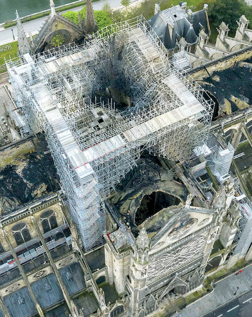 Speaking after a meeting at the presidential palace about the monument’s reconstruction, Bern said Macron didn’t express his views regarding the rebuilding of the cathedral’s lead roof, or whether the frame should be restored in wood like the destroyed one, or in metal or concrete. He also said France would hold an international architecture competition to determine whether the collapsed 19th-century spire would be rebuilt to the same design or a new one.
