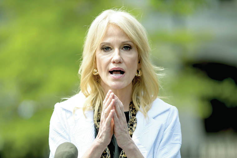 “We’re accepting apologies today, too,” Conway told reporters, adding that Trump watched Barr, talked to his lawyers and was in “a great mood.”
