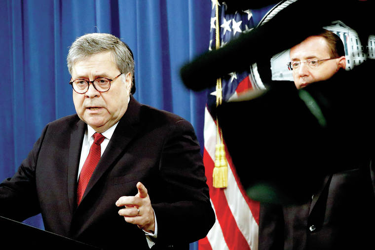 The Justice Department released its redacted version of the report about 90 minutes after Barr offered his own final assessment of the findings at a testy news conference. The nation, Congress and Trump’s White House consumed it voraciously online, via compact disc delivered to legislators and in loose-leaf binders distributed to reporters.