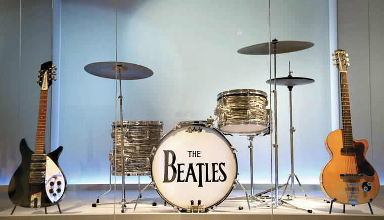 Also featured is a setup like that used by the Beatles on “The Ed Sullivan Show” in 1964. After that performance, “thousands of rock bands were formed using that same lineup: two guitars, a bass and a drum set,” says Dobney.