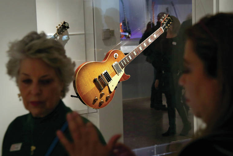 Over 130 instruments are featured in the show, including ones played and beloved by the Beatles, Elvis Presley, Bruce Springsteen, The Rolling Stones, The Grateful Dead, Lady Gaga, Joan Jett, Metallica, Steve Miller, Page and other rock ‘n’ roll greats. The collection spans 1939 to 2017. All the instruments are on loan, most by the musicians themselves, although Miller has promised to donate to the Met his 1961 Les Paul TV Special guitar, painted by surfboard artist Bob Cantrell.