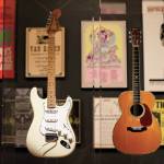 A wall image of Springsteen taken from behind with his guitar over his shoulder illustrates how for some stars, the guitar became almost an extension of their body.