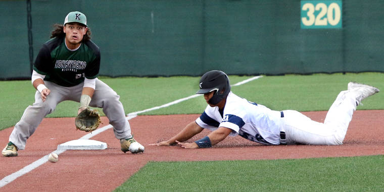 In the first, Kamehameha got off to a healthy start when Atkins and La’a Asuncion walked, and Ahuna singled to load the bases for Michaels, who emptied them with his triple.