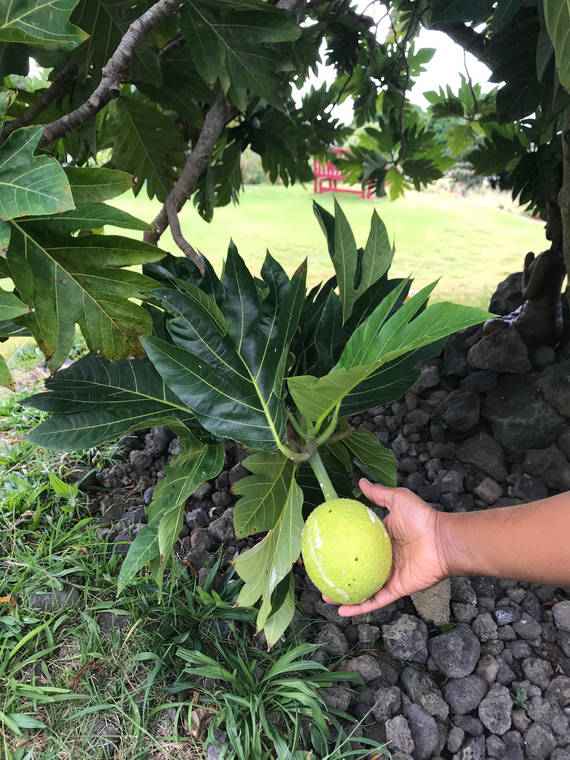 Photo courtesy of VOLTAIRE MOISE The breadfruit is one of the many canoe plants brought to Hawaii by early Polynesians from Southeast Asia. Ornamental and useful, it is a great cultural addition to Hawaii gardens.
