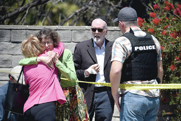 POWAY, Calif. — A 19-year-old gunman opened fire inside a synagogue near San Diego as worshippers celebrated the last day of a major Jewish holiday, killing a woman and wounding the rabbi and two others Saturday, authorities said.