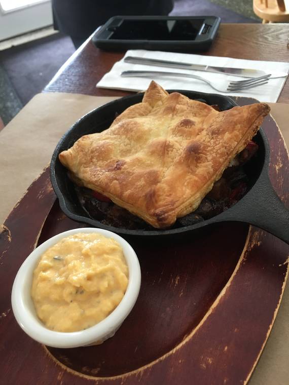 Want to eat vegetarian? There are three selections of 100% plant-based specialties — house cheese steak, roasted vegetable cobbler or Israeli shakshuka. The Fast and Famous Hot sandwiches include hot pastrami, French dip or BBQ house smoked pork.