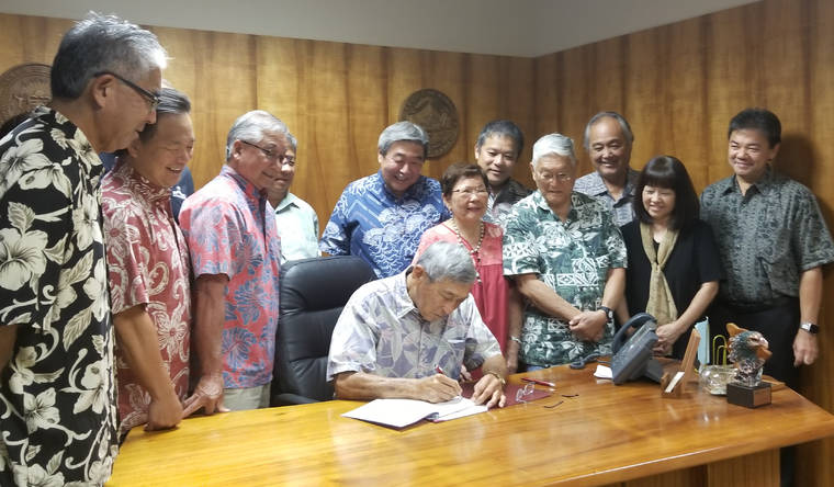 Taniguchi said he wanted Kim to be the first one to sign from the island, followed by numerous leaders of Hilo’s Japanese community.