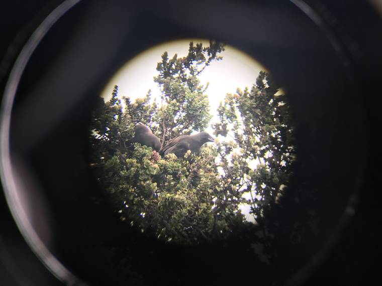 Rachel Kingsley, education and outreach associate for The ‘Alala Project, said researchers cannot confirm the presence of eggs within the nest, as the nest is 40 feet up a tree and currently has an extremely endangered bird perched upon it at all times. However, the pair’s behavior is strongly indicative of incubation.
