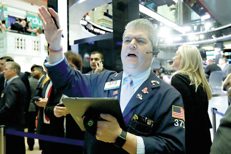 FILE - In this April 11, 2019, file photo trader John Panin works on the floor of the New York Stock Exchange. The U.S. stock market opens at 9:30 a.m. EDT on Tuesday, May 7. (AP Photo/Richard Drew, File)