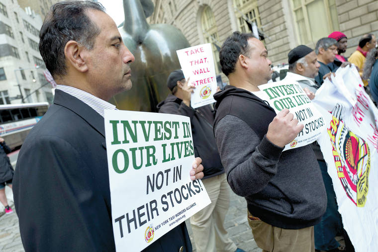 NEW YORK — Some drivers for ride-hailing giants Uber and Lyft turned off their apps Wednesday to protest what they say are declining wages at a time when both companies are raking in billions of dollars from investors.
