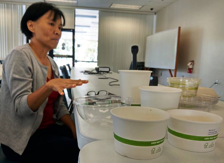 The county rule will require the use of recyclables or compostables certified by the Biodegradable Product Institute, which carry a BPI logo. The products are compostable in an industrial composting facility, such as one Hawaii County plans to open by July 1, 2020.