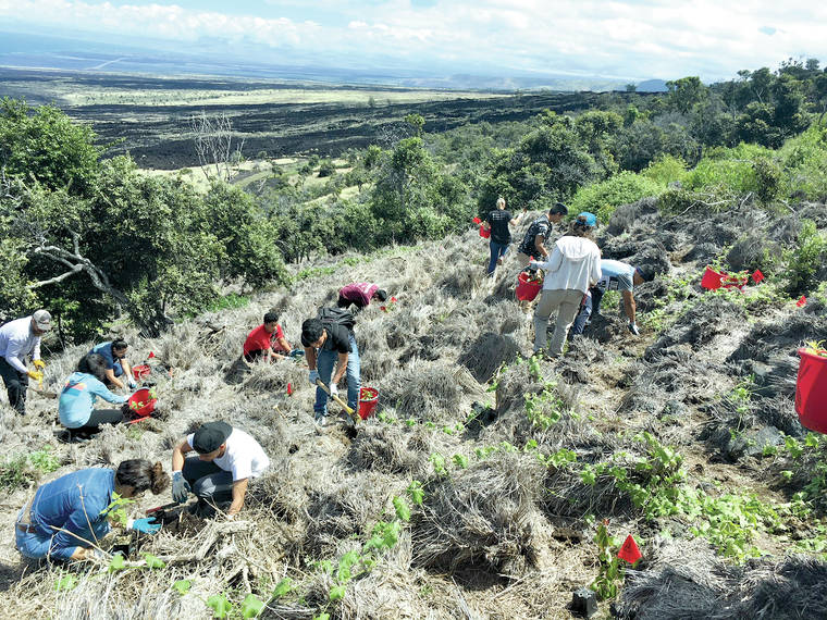 The program’s target population includes students from a mix of Hawaii schools, particularly those serving Native Hawaiians as well as university students. Just a few of the many community groups that participated in forest stewardship learning activities at Ka‘upulehu Dryland Forest include Hawai‘i Youth Conservation Corps, Kamehameha Schools, Kealakehe Intermediate Na Kahumoku, Kealakehe High School, Cornell University, University of Hawaii at Hilo Environmental Studies, KUPU, U.S. Forest Service, Hauoli Mau Loa, Papahanaumokuakea, Hawaii Community College cultural geography class and Honokaa High School.