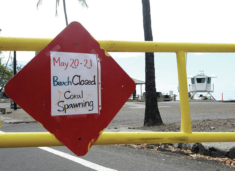 LAURA RUMINSKI/West Hawaii Today Kahaluu Beach is closed through today because of coral spawning.