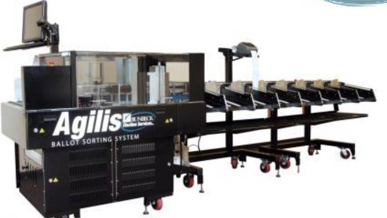 The Runbeck ballot sorting system can process up to 18,000 pieces an hour, according to the manufacturer, Tempe, Arizona-based Runbeck Election Services Inc. It time- and date-stamps ballot envelopes, automatically captures images and verifies signatures, sorts ballots for faster vote-counting and has full audit capabilities.
