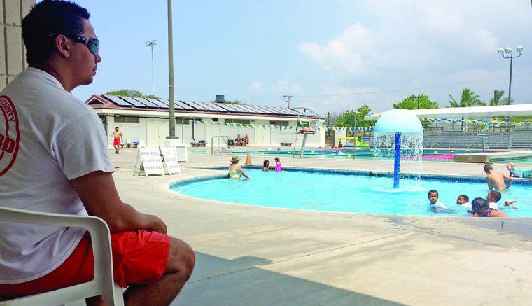 A Hawaii County lifeguard watches swimmers at the Kona Community Aquatic Center in 2017. (Tom Hasslinger/West Hawaii Today, file photo)